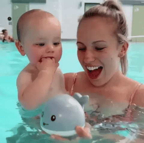 Bebekler oyuncak balinayı izlerken ve onun etrafında hareket ederken, kaslarını kullanır, suya ulaşmak için uzanır, dengesini sağlar. Bu da kaba motor becerilerinin ve vücut koordinasyonunun gelişmesini destekler.